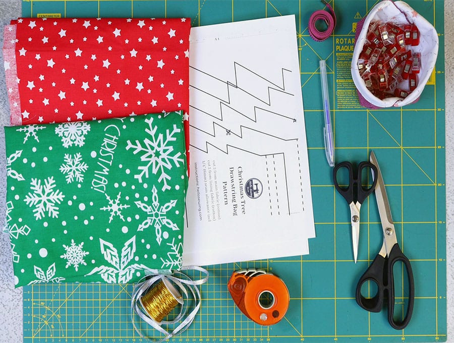 Watch the diy Christmas tree drawstring bag video first and then follow the written step by step instructions below.