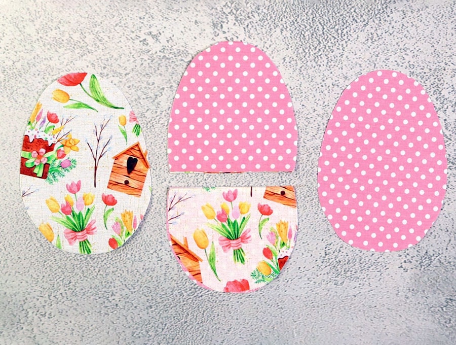 Open the top and bottom egg pieces, fold so the right sides show, and press.