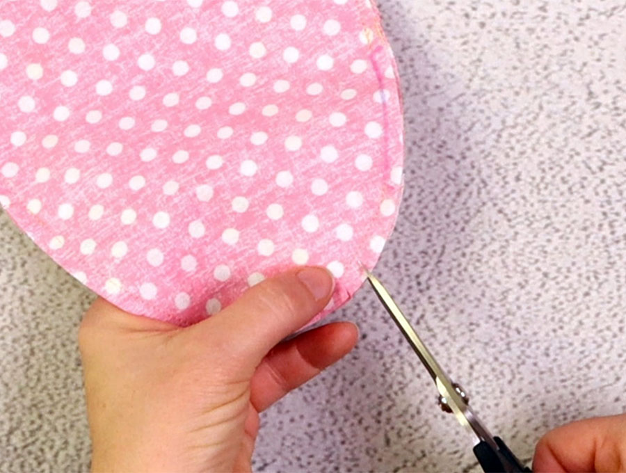 Clip all around the edges to ease the fabric once it is turned so it will lie flat – do not clip over the gap, and make sure not to clip into the stitching.