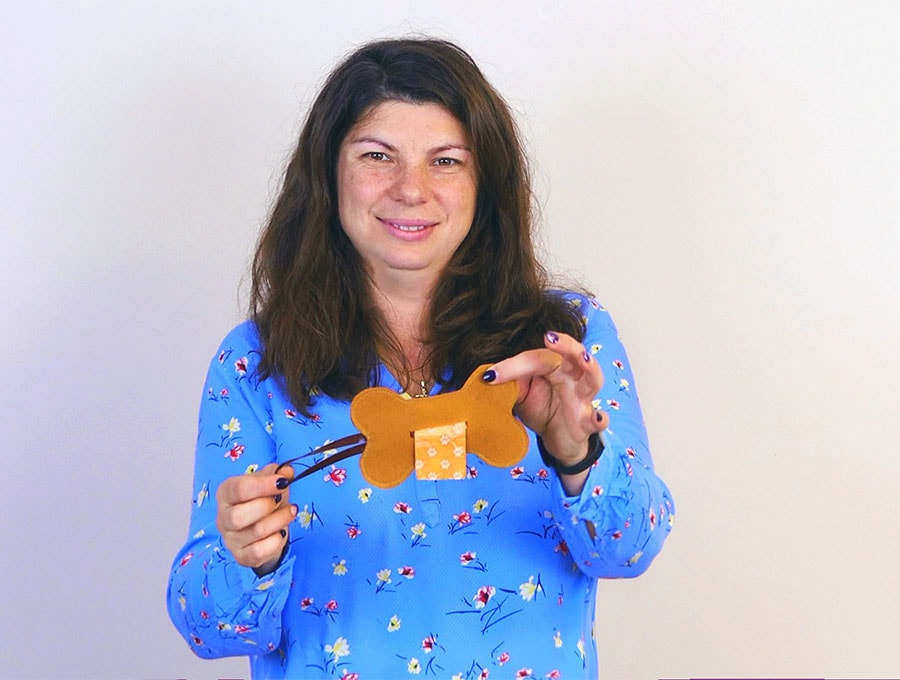 Stitch around the dog bone using a 6mm (1/4″) seam allowance. Make sure to double stitch over the strap to secure it.
