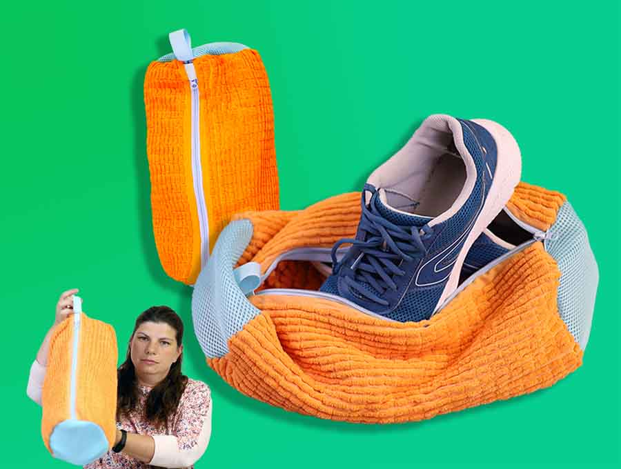 Tired of shoes banging around in the washer? Shoelaces taking ages to untangle? Well, shoes bags for washing are being sold online, but you can easily make your own shoe laundry bag with soft chenille fabric to protect your shoes. Best news it’s a an easy 15 minute make – what’s not to love about that!