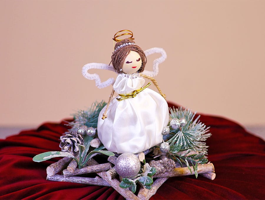 The angel is now ready to perch on top of the Christmas tree, be placed on a mantelpiece – or form part of a table centrepiece. If you enjoyed this fun project you can complete with kids then give us a like and subscribe to get more great projects delivered to your inbox year round. We love sustainable, affordable projects that allow the creativity of our subscribers to shine.